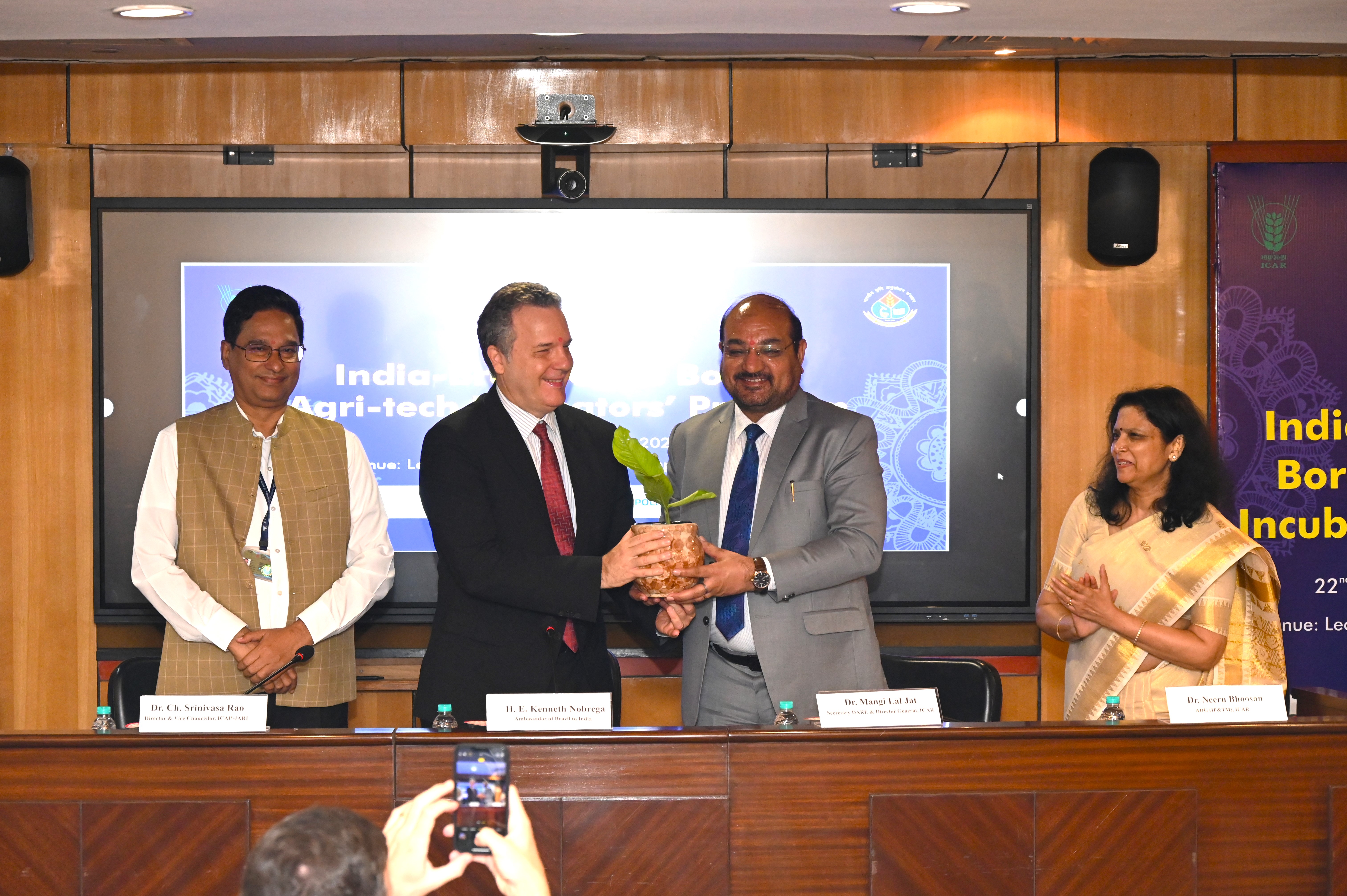 The event was chaired by Dr. Mangi Lal Jat, Director General of ICAR and Secretary of the Department of Agricultural Research and Education (DARE), with His Excellency Kenneth Felix Haczynski da Nobrega, Ambassador of Brazil to India, serving as the Chief Guest.